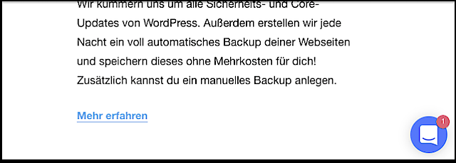 So sieht Intercom auf raidboxes.de für den Besucher aus. Hat der Besucher oder Kunde eine offene Konversation mit einem Kollegen, dann wird die Zahl der Antworten mit der roten Blase gekennzeichnet.