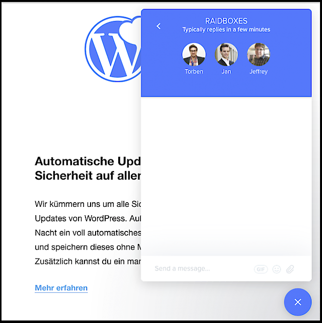 Die Firma RAIDBOXES aus Münster spezialisiert sich auf das Hosting von WordPress-Projekten und hat auf ihrer Website seit langem einen Live Chat als Support Element zur Kundenkommunikation implementiert – mit großem Erfolg.