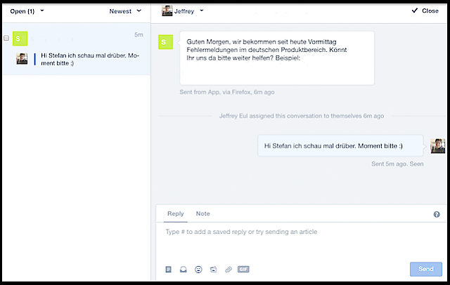 "Intercom bietet ein Online-Dashboard und eine App an. Beides nutzen wir natürlich ausgiebig. Wenn ich zum Beispiel Support habe, dann ist im Büro immer das Intercom Dashboard offen. Wenn ich dann das Büro verlasse, bekomme ich alle Anfragen auf mein Handy gepusht und kann mobil antworten."