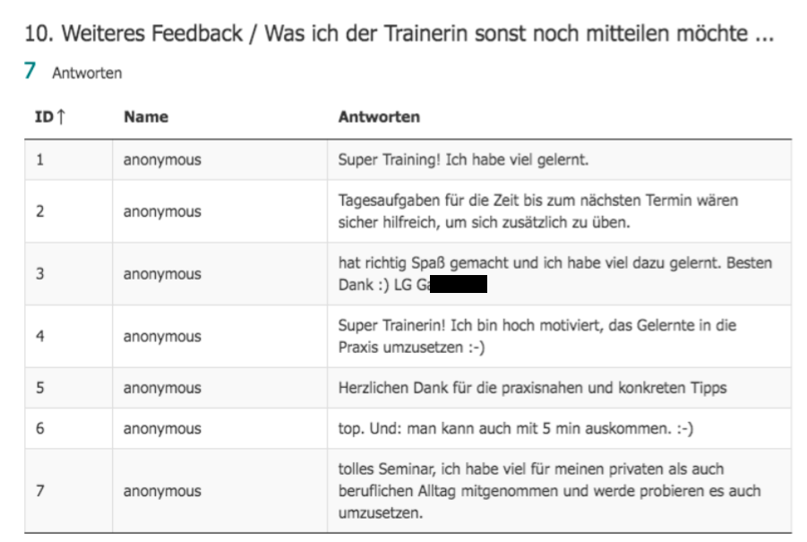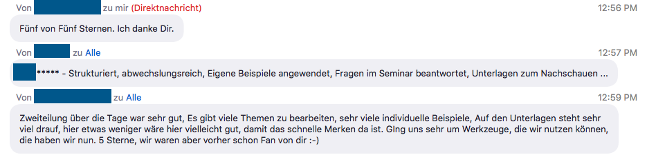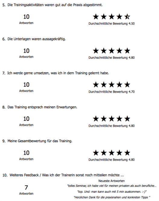 Seminarbewertungen und Teilnehmer-Feedback sind uns besonders wichtig.