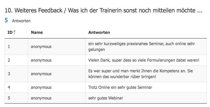 Ihr Seminar ist durchaus sehr empfehlenswert! Das dürfen Sie alles veröffentlichen."