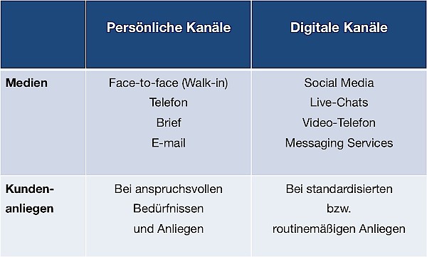 Guter Kundenservice sollte mehr als nur einen Kundenkanal anbieten, sodass Kunden diverse Möglichkeiten zur Kontaktaufnahme mit einem Unternehmen haben. Die Erreichbarkeit vom Kundenservice ist hierbei der wichtigste aller Faktoren. Service-Beratung sollte nach Möglichkeit über alle Medien hinweg konsistent gut bleiben.